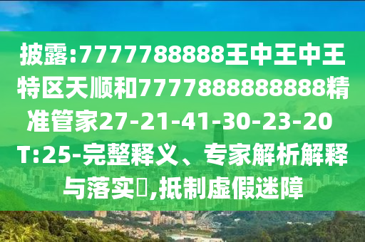 7777788888王中王中王特區(qū)天順和7777888888888精準(zhǔn)管家27-21-41-30-23-20 T:25的完整釋義、專家解析解釋與落實?