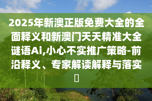 2025年新澳正版免費(fèi)大全的全面釋義和新澳門天天精準(zhǔn)大全謎語Ai,小心不實(shí)推廣策略-前沿釋義、專家解讀解釋與落實(shí)?