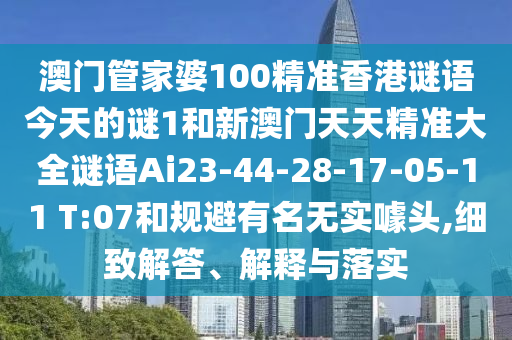 澳門管家婆100精準香港謎語今天的謎1和新澳門天天精準大全謎語Ai23-44-28-17-05-11 T:07的細致解答、解釋與落實