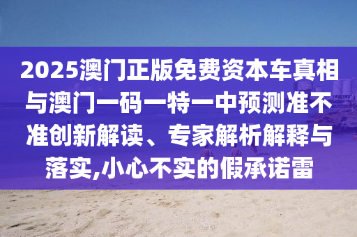 2025澳門正版免費資本車真相與澳門一碼一特一中預測準不準創(chuàng)新解讀、專家解析解釋與落實,小心不實的假承諾雷