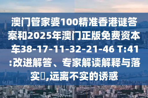 澳門管家婆100精準(zhǔn)香港謎答案和2025年澳門正版免費(fèi)資本車38-17-11-32-21-46 T:41:改進(jìn)解答、專家解讀解釋與落實(shí)?,遠(yuǎn)離不實(shí)的誘惑