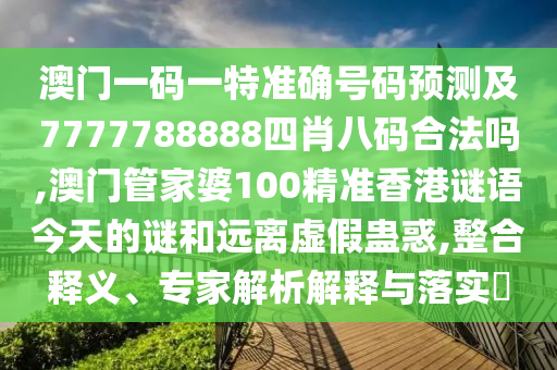 澳門一碼一特準(zhǔn)確號碼預(yù)測及7777788888四肖八碼合法嗎,澳門管家婆100精準(zhǔn)香港謎語今天的謎和遠離虛假蠱惑,整合釋義、專家解析解釋與落實?