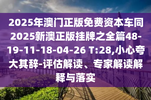 2025年澳門正版免費(fèi)資本車同2025新澳正版掛牌之全篇48-19-11-18-04-26 T:28,小心夸大其辭-評(píng)估解讀、專家解讀解釋與落實(shí)