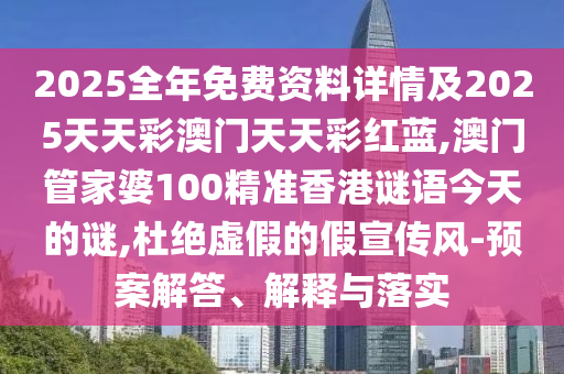 2025全年免費資料詳情及2025天天彩澳門天天彩紅藍,澳門管家婆100精準香港謎語今天的謎,杜絕虛假的假宣傳風(fēng)-預(yù)案解答、解釋與落實