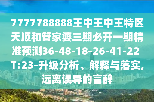 7777788888王中王中王特區(qū)天順和管家婆三期必開一期精準預測36-48-18-26-41-22 T:23-升級分析、解釋與落實,遠離誤導的言辭