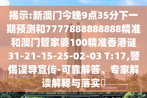 揭示:新澳門今晚9點35分下一期預測和7777888888888精準和澳門管家婆100精準香港謎31-21-15-25-02-03 T:17,警惕誤導宣傳-可靠解答、專家解讀解釋與落實?