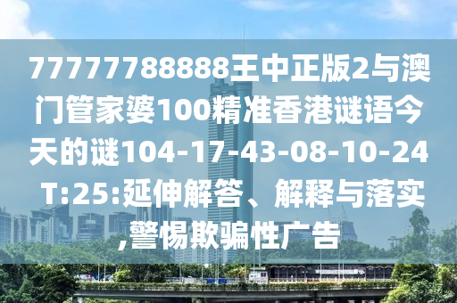 77777788888王中正版2與澳門管家婆100精準香港謎語今天的謎104-17-43-08-10-24 T:25:延伸解答、解釋與落實,警惕欺騙性廣告
