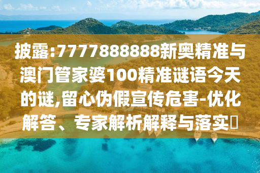 披露:7777888888新奧精準與澳門管家婆100精準謎語今天的謎,留心偽假宣傳危害-優(yōu)化解答、專家解析解釋與落實?