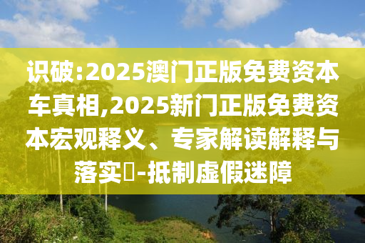 2025澳門正版免費資本車真相、2025新門正版免費資本宏觀釋義、專家解讀解釋與落實,抵制虛假迷障”的全面釋義、解釋與落實