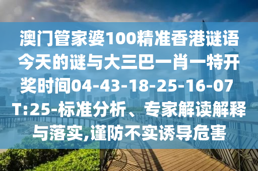 澳門管家婆100精準(zhǔn)香港謎語今天的謎與大三巴一肖一特開獎(jiǎng)時(shí)間04-43-18-25-16-07 T:25-標(biāo)準(zhǔn)分析、專家解讀解釋與落實(shí),謹(jǐn)防不實(shí)誘導(dǎo)危害