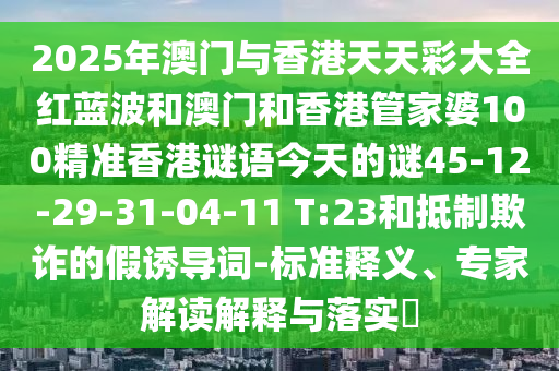 2025年澳門(mén)與香港天天彩大全紅藍(lán)波和澳門(mén)和香港管家婆100精準(zhǔn)香港謎語(yǔ)今天的謎45-12-29-31-04-11 T:23和抵制欺詐的假誘導(dǎo)詞-標(biāo)準(zhǔn)釋義、專(zhuān)家解讀解釋與落實(shí)?