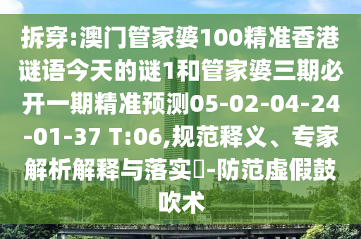 拆穿:澳門管家婆100精準香港謎語今天的謎1和管家婆三期必開一期精準預測05-02-04-24-01-37 T:06,規(guī)范釋義、專家解析解釋與落實?-防范虛假鼓吹術