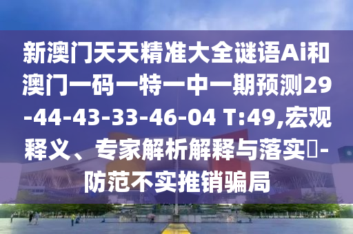 新澳門天天精準(zhǔn)大全謎語Ai和澳門一碼一特一中一期預(yù)測29-44-43-33-46-04 T:49,宏觀釋義、專家解析解釋與落實(shí)?-防范不實(shí)推銷騙局