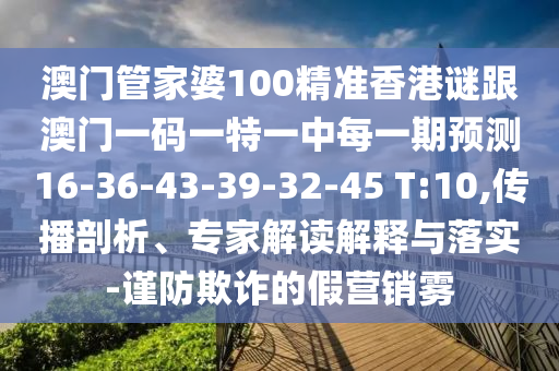 澳門(mén)管家婆100精準(zhǔn)香港謎跟澳門(mén)一碼一特一中每一期預(yù)測(cè)16-36-43-39-32-45 T:10的傳播剖析、專(zhuān)家解讀解釋與落實(shí)