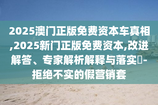 2025澳門正版免費資本車真相,2025新門正版免費資本:改進解答、專家解析解釋與落實?