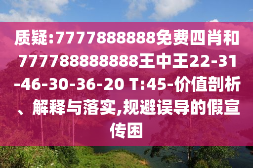 關(guān)于質(zhì)疑“7777888888免費(fèi)四肖”和“777788888888王中王22-31-46-30-36-20 T:45”以及規(guī)避誤導(dǎo)性虛假宣傳的價(jià)值剖析、解釋與落實(shí)