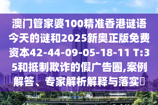 澳門(mén)管家婆100精準(zhǔn)香港謎語(yǔ)今天的謎和2025新奧正版免費(fèi)資本42-44-09-05-18-11 T:35和抵制欺詐的假?gòu)V告圈,案例解答、專(zhuān)家解析解釋與落實(shí)?