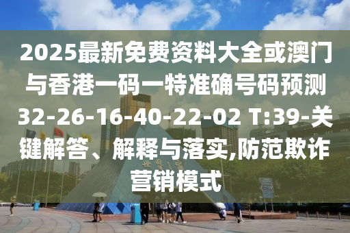 2025最新免費(fèi)資料大全或澳門與香港一碼一特準(zhǔn)確號(hào)碼預(yù)測(cè)32-26-16-40-22-02 T:39-關(guān)鍵解答、解釋與落實(shí),防范欺詐營(yíng)銷模式