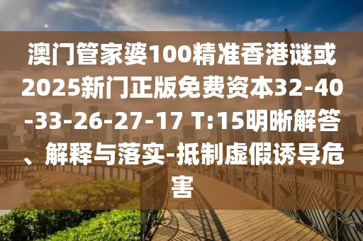 澳門管家婆100精準(zhǔn)香港謎或2025新門正版免費(fèi)資本32-40-33-26-27-17 T:15明晰解答、解釋與落實(shí)-抵制虛假誘導(dǎo)危害