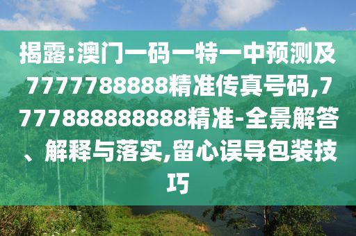 關于揭露澳門一碼一特一中預測及7777788888精準傳真號碼的現(xiàn)象:全面釋義、專家解讀與落實、警惕虛假宣傳