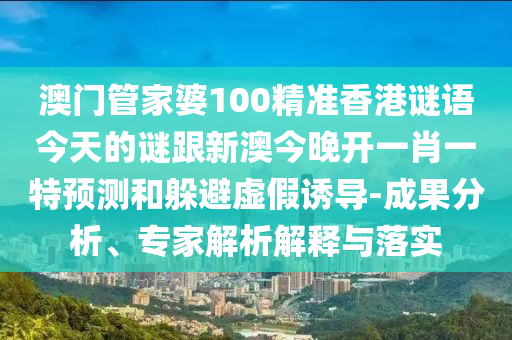 澳門管家婆100精準(zhǔn)香港謎語今天的謎跟新澳今晚開一肖一特預(yù)測和躲避虛假誘導(dǎo)-成果分析、專家解析解釋與落實