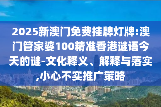2025新澳門免費掛牌燈牌:澳門管家婆100精準香港謎語今天的謎-文化釋義、解釋與落實,小心不實推廣策略