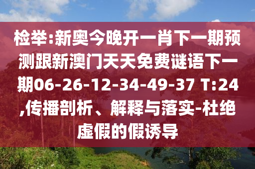 檢舉:新奧今晚開一肖下一期預(yù)測跟新澳門天天免費謎語下一期06-26-12-34-49-37 T:24,傳播剖析、解釋與落實-杜絕虛假的假誘導(dǎo)