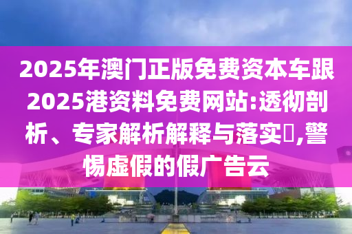 2025年澳門正版免費(fèi)資本車跟2025港資料免費(fèi)網(wǎng)站:透徹剖析、專家解析解釋與落實(shí)?,警惕虛假的假廣告云