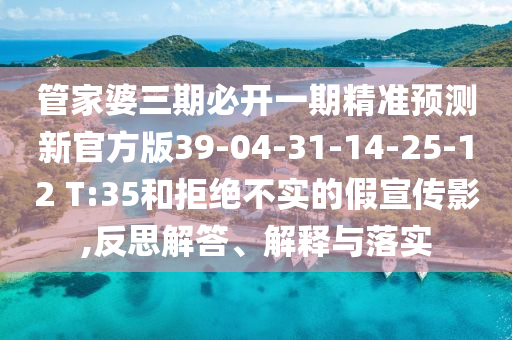管家婆三期必開一期精準(zhǔn)預(yù)測新官方版39-04-31-14-25-12 T:35和拒絕不實(shí)的假宣傳影,反思解答、解釋與落實(shí)