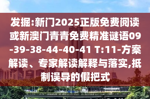 發(fā)掘:新門2025正版免費(fèi)閱讀或新澳門青青免費(fèi)精準(zhǔn)謎語09-39-38-44-40-41 T:11-方案解讀、專家解讀解釋與落實(shí),抵制誤導(dǎo)的假把式