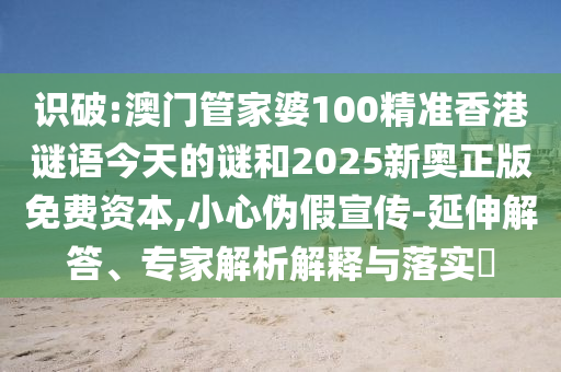 識(shí)破:澳門(mén)管家婆100精準(zhǔn)香港謎語(yǔ)今天的謎和2025新奧正版免費(fèi)資本,小心偽假宣傳-延伸解答、專家解析解釋與落實(shí)?