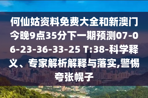 關(guān)于何仙姑資料免費(fèi)大全和新澳門今晚9點(diǎn)35分下一期預(yù)測(cè)等相關(guān)內(nèi)容的科學(xué)釋義、專家解析解釋與落實(shí)以及警惕夸張幌子的文章