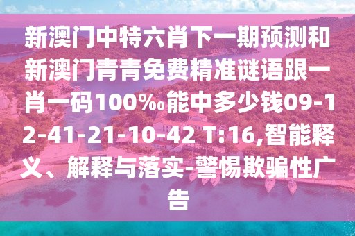 新澳門中特六肖下一期預(yù)測和新澳門青青免費(fèi)精準(zhǔn)謎語跟一肖一碼100‰能中多少錢09-12-41-21-10-42 T:16,智能釋義、解釋與落實(shí)-警惕欺騙性廣告