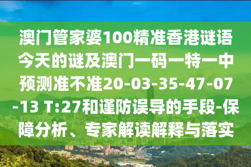 澳門管家婆100精準香港謎語今天的謎及澳門一碼一特一中預(yù)測準不準20-03-35-47-07-13 T:27的保障分析、專家解讀解釋與落實