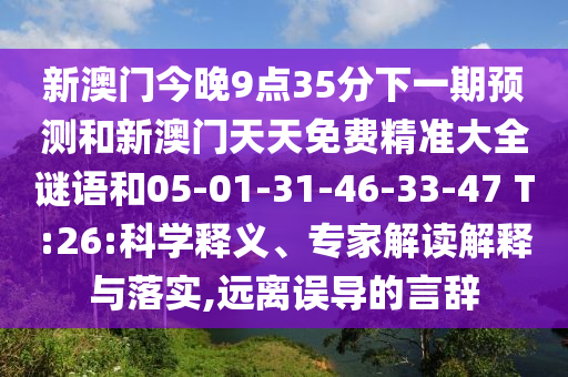新澳門今晚9點(diǎn)35分下一期預(yù)測和新澳門天天免費(fèi)精準(zhǔn)大全謎語和05-01-31-46-33-47 T:26:科學(xué)釋義、專家解讀解釋與落實(shí),遠(yuǎn)離誤導(dǎo)的言辭