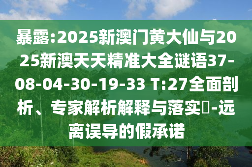 2025新澳門(mén)黃大仙與2025新澳天天精準(zhǔn)大全謎語(yǔ)37-08-04-30-19-33 T:27,遠(yuǎn)離誤導(dǎo)的假承諾——全面剖析、專家解析解釋與落實(shí)”的全面釋義、解釋與落實(shí)