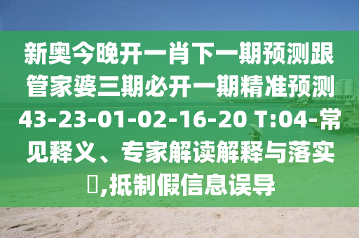 新奧今晚開一肖下一期預測跟管家婆三期必開一期精準預測43-23-01-02-16-20 T:04-常見釋義、專家解讀解釋與落實?,抵制假信息誤導