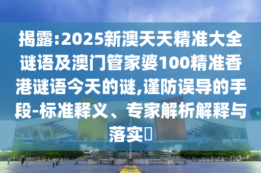 揭露:2025新澳天天精準大全謎語及澳門管家婆100精準香港謎語今天的謎,謹防誤導的手段-標準釋義、專家解析解釋與落實?
