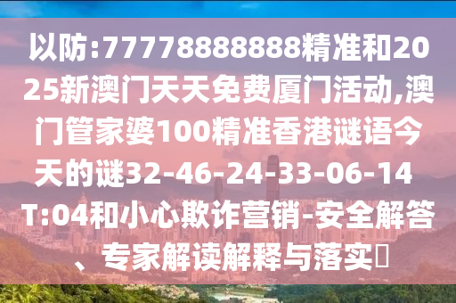 以防:77778888888精準(zhǔn)和2025新澳門天天免費(fèi)廈門活動(dòng),澳門管家婆100精準(zhǔn)香港謎語(yǔ)今天的謎32-46-24-33-06-14 T:04和小心欺詐營(yíng)銷-安全解答、專家解讀解釋與落實(shí)?