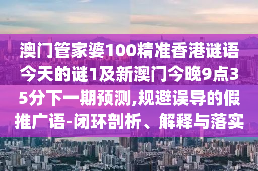 澳門管家婆100精準(zhǔn)香港謎語(yǔ)今天的謎1及新澳門今晚9點(diǎn)35分下一期預(yù)測(cè),規(guī)避誤導(dǎo)的假推廣語(yǔ)-閉環(huán)剖析、解釋與落實(shí)