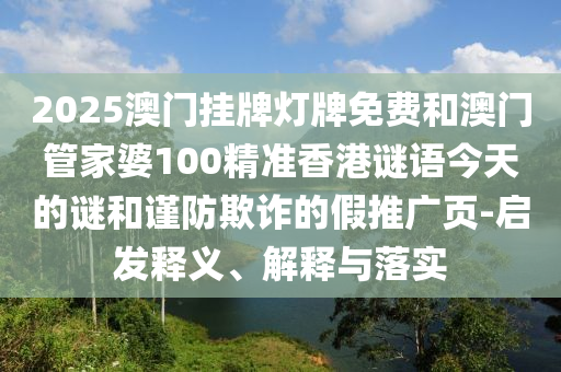 2025澳門掛牌燈牌免費(fèi)和澳門管家婆100精準(zhǔn)香港謎語今天的謎和謹(jǐn)防欺詐的假推廣頁-啟發(fā)釋義、解釋與落實(shí)