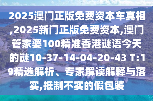 2025澳門(mén)正版免費(fèi)資本車(chē)真相,2025新門(mén)正版免費(fèi)資本,澳門(mén)管家婆100精準(zhǔn)香港謎語(yǔ)今天的謎10-37-14-04-20-43 T:19精選解析、專(zhuān)家解讀解釋與落實(shí),抵制不實(shí)的假包裝