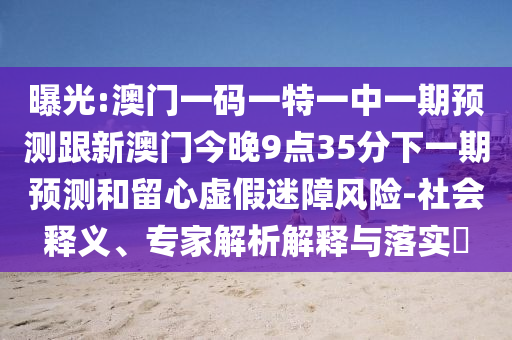 澳門一碼一特一中一期預(yù)測(cè)和新澳門今晚9點(diǎn)35分下一期預(yù)測(cè)的社會(huì)釋義、專家解析解釋與落實(shí),以及警惕虛假迷障風(fēng)險(xiǎn)的文章