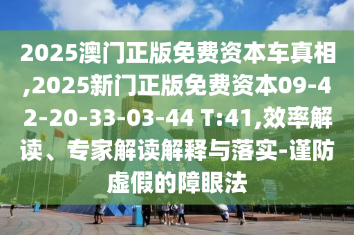 2025澳門(mén)正版免費(fèi)資本車(chē)真相,2025新門(mén)正版免費(fèi)資本09-42-20-33-03-44 T:41,效率解讀、專(zhuān)家解讀解釋與落實(shí)-謹(jǐn)防虛假的障眼法