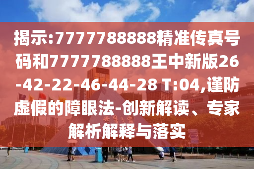 揭示:7777788888精準傳真號碼和7777788888王中新版26-42-22-46-44-28 T:04,謹防虛假的障眼法-創(chuàng)新解讀、專家解析解釋與落實