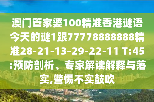 澳門管家婆100精準(zhǔn)香港謎語今天的謎1跟77778888888精準(zhǔn)28-21-13-29-22-11 T:45:預(yù)防剖析、專家解讀解釋與落實(shí),警惕不實(shí)鼓吹