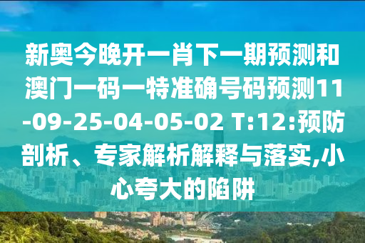 新奧今晚開(kāi)一肖下一期預(yù)測(cè)和澳門(mén)一碼一特準(zhǔn)確號(hào)碼預(yù)測(cè)11-09-25-04-05-02 T:12:預(yù)防剖析、專(zhuān)家解析解釋與落實(shí),小心夸大的陷阱