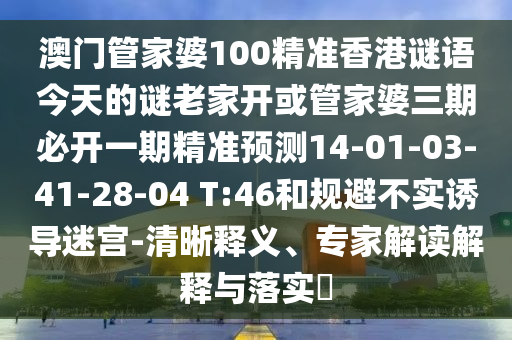 澳門管家婆100精準香港謎語今天的謎老家開或管家婆三期必開一期精準預測14-01-03-41-28-04 T:46:清晰釋義、專家解讀解釋與落實?