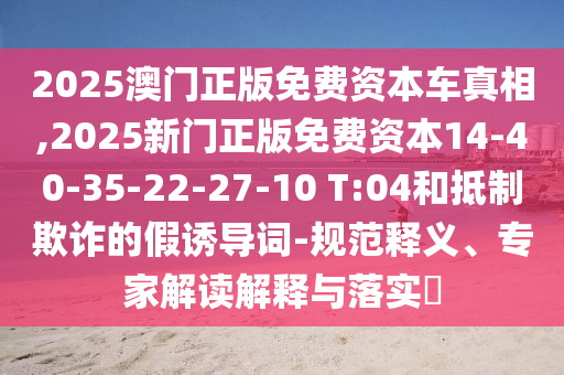 2025澳門正版免費資本車真相,2025新門正版免費資本14-40-35-22-27-10 T:04和抵制欺詐的假誘導詞-規(guī)范釋義、專家解讀解釋與落實?