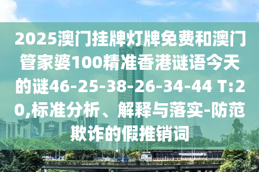 2025澳門掛牌燈牌免費和澳門管家婆100精準香港謎語今天的謎46-25-38-26-34-44 T:20的標準分析、解釋與落實